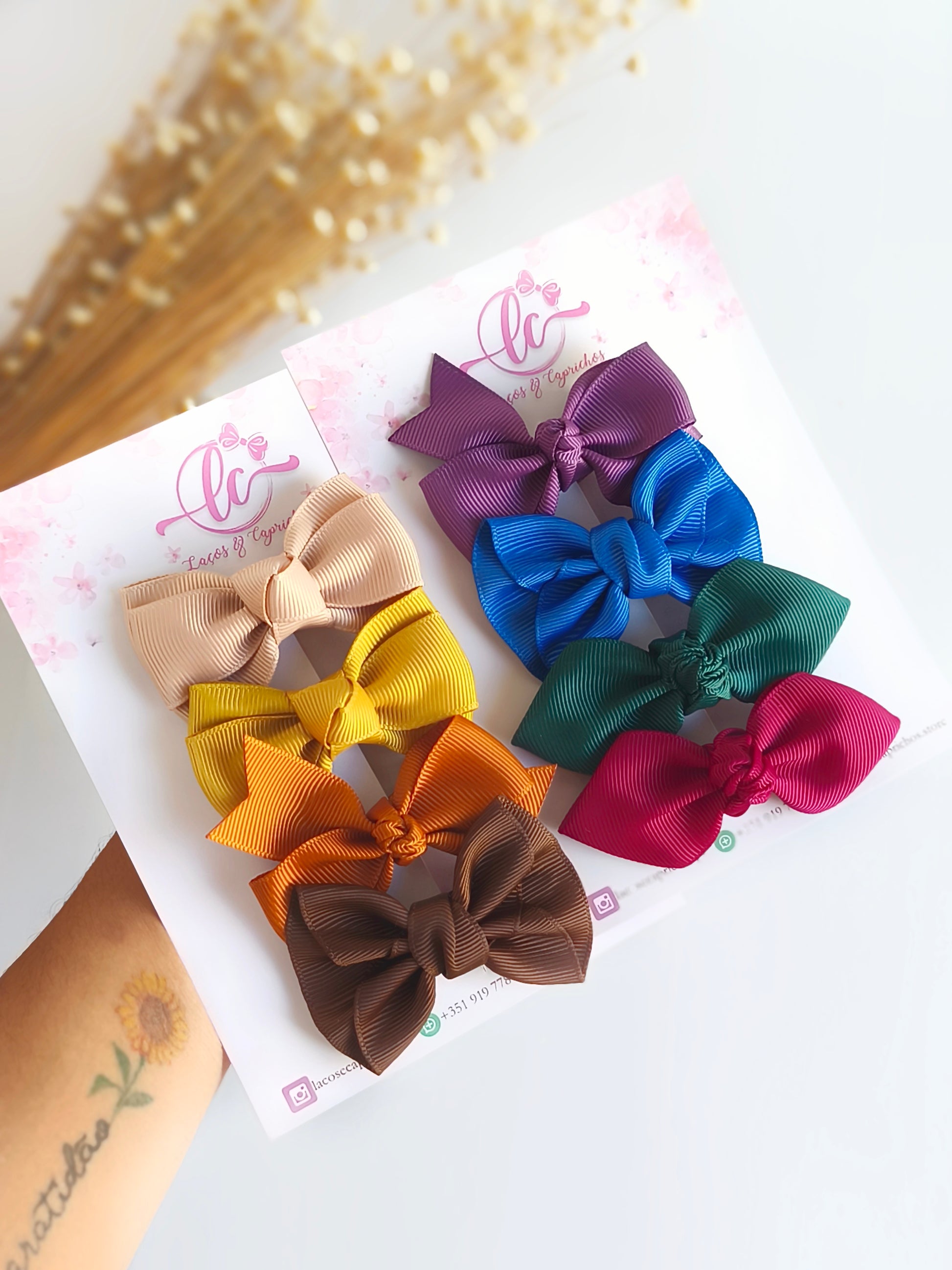 Encante-se com o nosso Pack Promocional Outono-Inverno, uma seleção exclusiva com 8 laços clássicos de 6,5 cm em tons elegantes e quentinhos, perfeitos para combinar com os looks desta estação 🍂✨